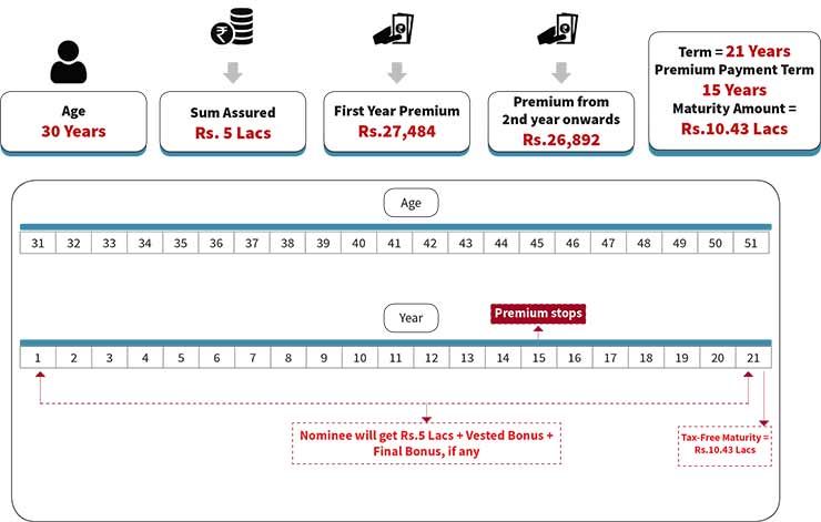 - The customer gets the tax-free maturity under this plan which includes the bonus