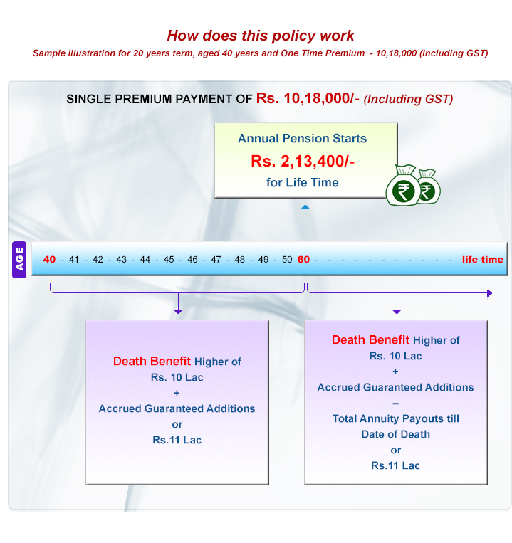 • Pay Single Premium and get Guaranteed pension for Lifetime